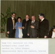 Hans Karl Neuhauser mit Frau, Bundesminister Josef Ertl, Senator Dr. Peter Brugger, Bürgermeister Haymo von Grebmer, Bruneck