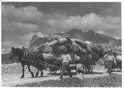 Transport: Heuwagen mit Pferd