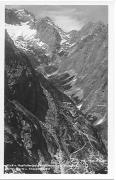 Blick v. Hupfleitenjoch ins Höllental, auf Zugspitze, Riffelscharte u. Knappenhäuser