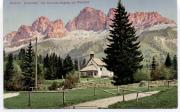Südtirol. Dolomiten: Die Karersee-kapelle mit Rotwand