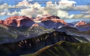 Die Sellagruppe (3152 m) vom Pordoijoch. Dolomiten. Dolomiti di Sella (3152 m) viste dal Pordoi - Valle di Fassa.