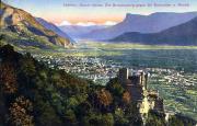 Südtirol. Kurort Meran. Die Brunnenburg gegen die Dolomiten u. Mendel.