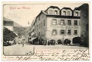 Gruss aus Meran. Rennweg mit Hotel zur Sonne.