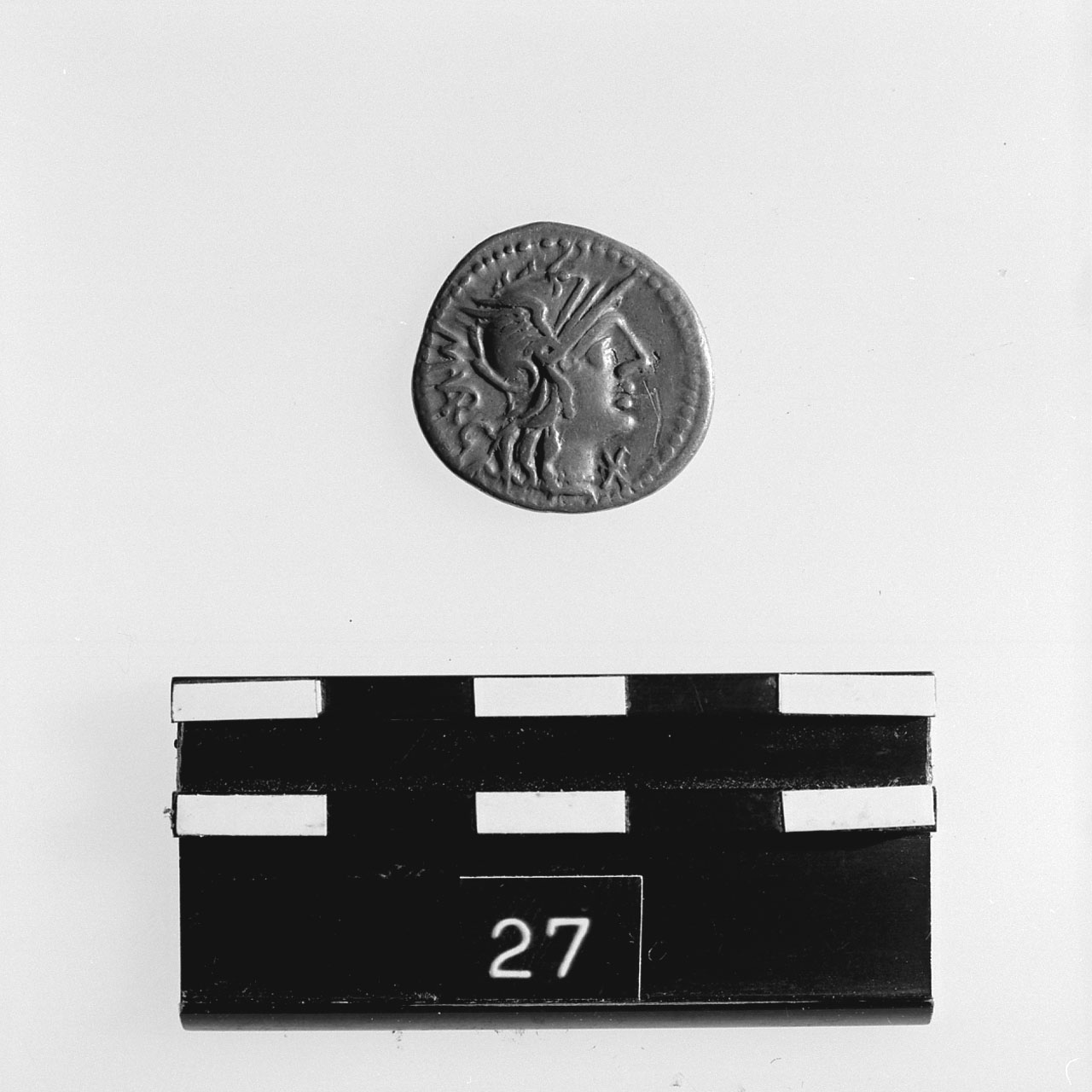 D/Testa elmata di Roma a d.; dietro, MúVARG disc.; davanti, segno di||valore; c.p. R/Giove in quadriga a d. con fulmine e redini nella s.||e ramo nella d.; in es., ROMA; c.l
