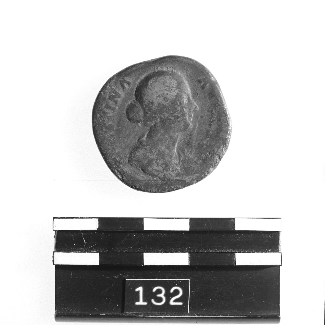 D/ FAVSTINA AV[GVSTA]; busto drappeggiato di Faustina Minore a d.|| R/ [TEMPOR FELIC]; Faustina Minore stante a s. tra quattro||fanciulle; regge due infanti tra le braccia; ai lati, S [C]