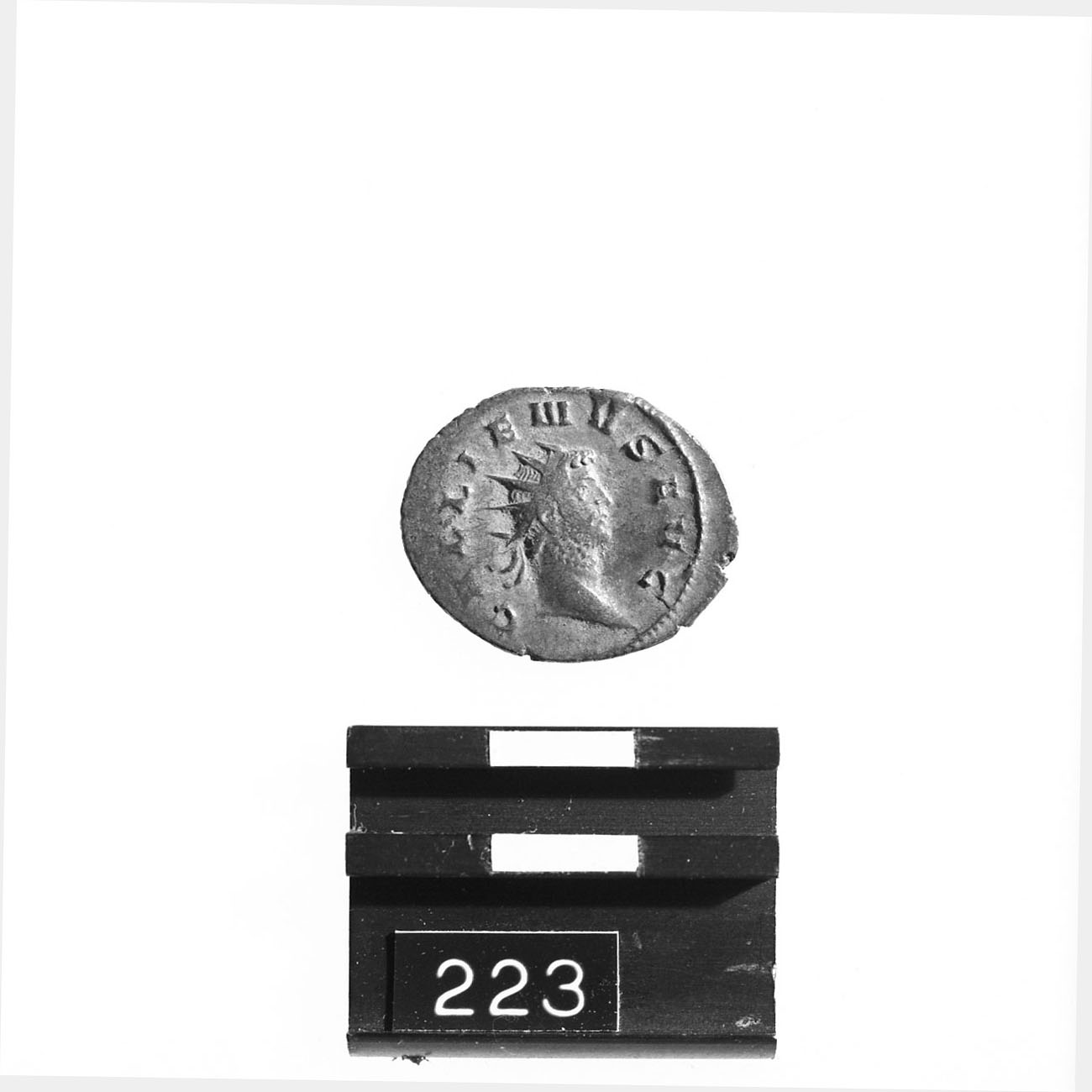 D/ GALLIENVS AVG; testa radiata di Gallieno a d.; c.p. R/||VIRTV S AVG; soldato stante a s., con lancia nella s. e la d. su uno||scudo; c.p