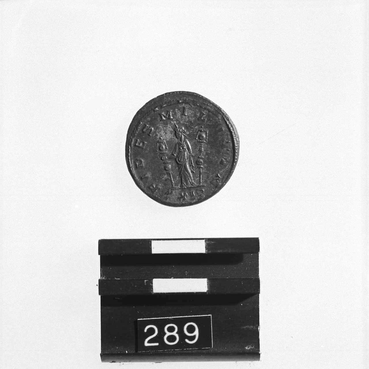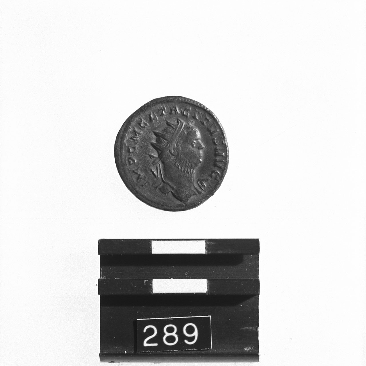 D/ IMP C M CL TACITVS AVG; busto radiato di Tacito a d. con drappeggio||sulla spalla s.; c.p. R/ FIDES MILITVM; Fides stante a s.||regge uno stendardo in ciascuna mano; sotto, XXIS (ultima lettera come||moneta n. cat. gen. 79655); c.p
