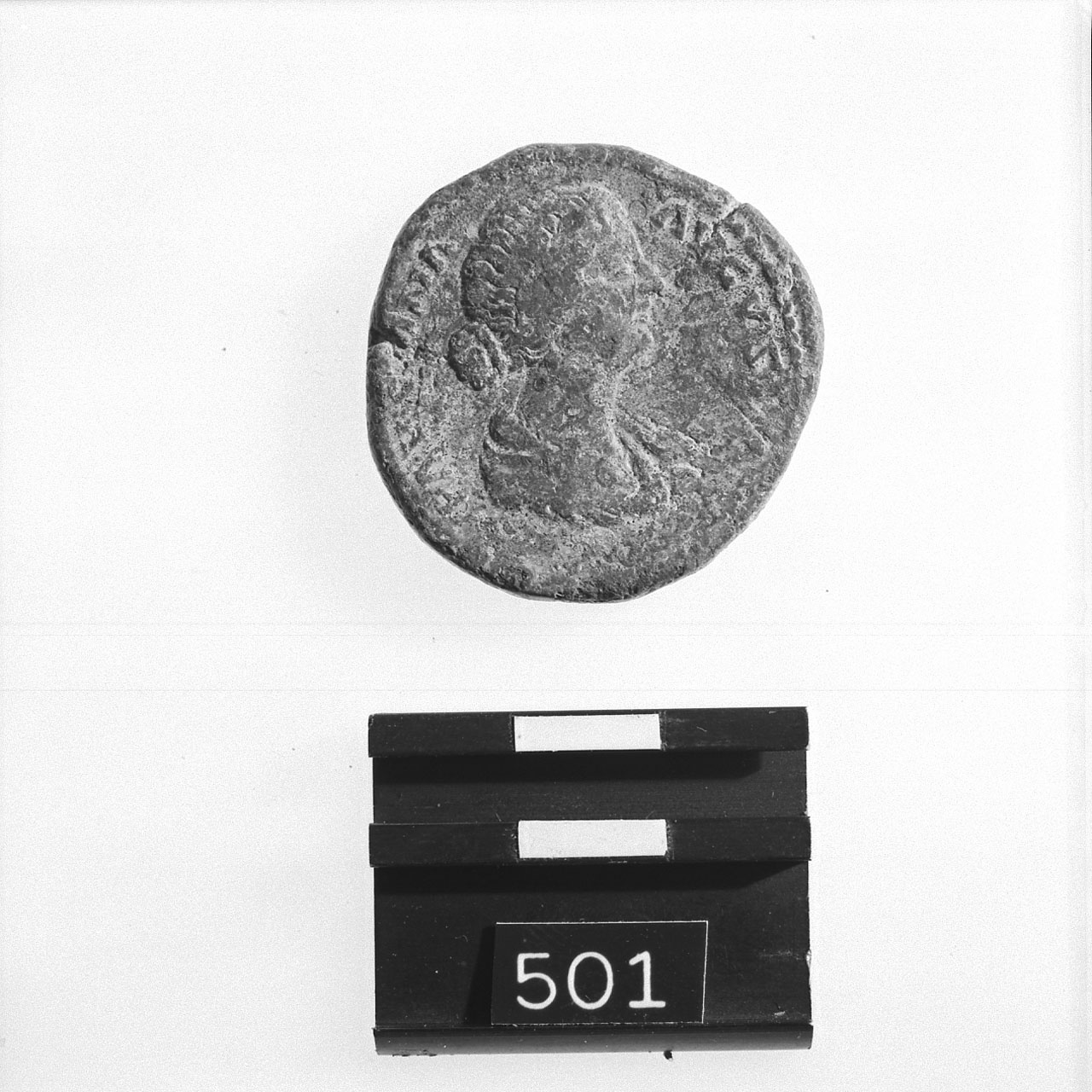 D/FAVSTINA AVGVSTA; Busto drappeggiato di Faustina Minore a d.; c.p.|| R/[IVN]ONI REGINAE; Giunone stante a s. con patera nella d.||e scettro nella s.; ai suoi piedi, pavone; ai lati, S C; c.p