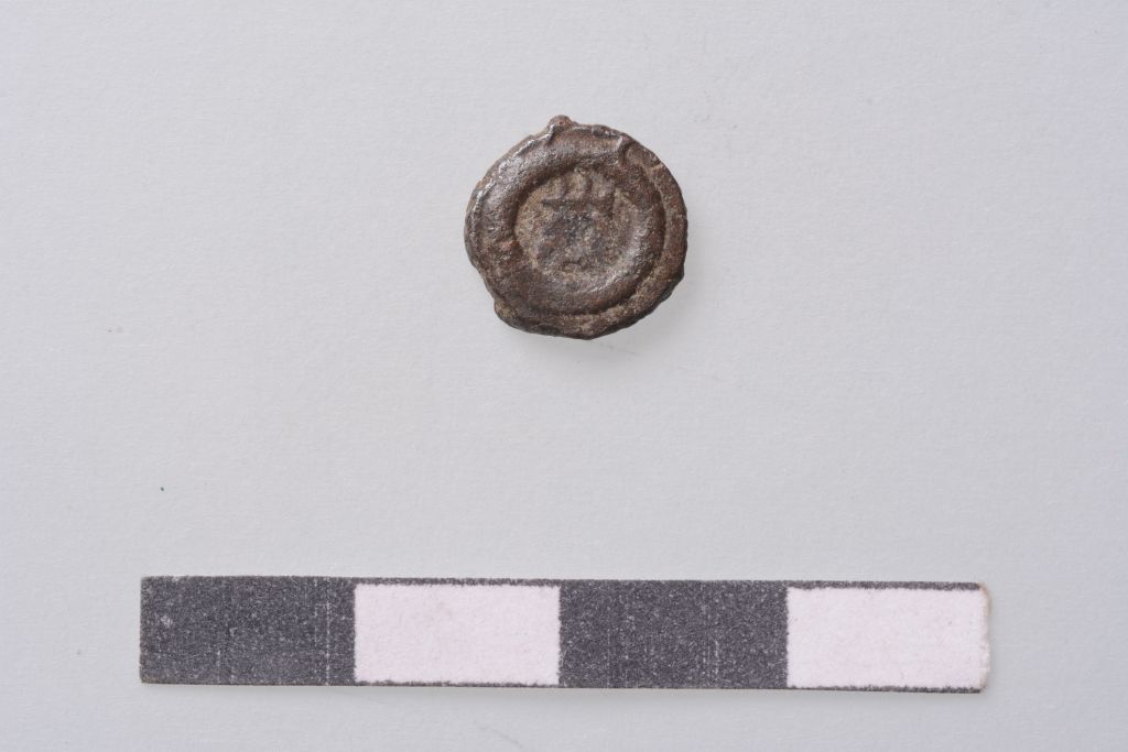 1 moneta di piccolo modulo. D/ Testa imperiale a destra. Legenda parziale [...] NACT [....] ( forse NACT per NAST (Anastasio ?). R/ Monogramma (?) in corona