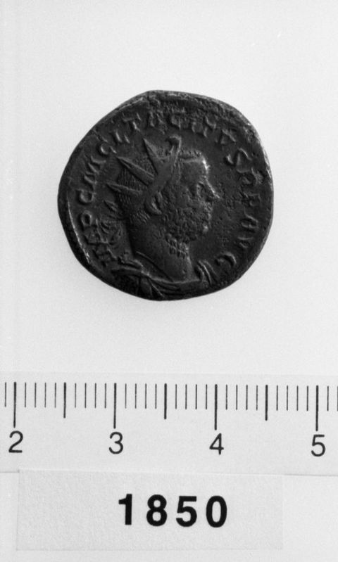 D/ IMP CM CL TACITVS PF AVG Busto radiato, corazzato,||drappeggiato, di Claudio Tacito, a d. Bordo di punti.||R/ PAX AETERNA Pax stante a s., con ramo d'olivo e||lungo scettro. In esergo: III. Bordo di punti