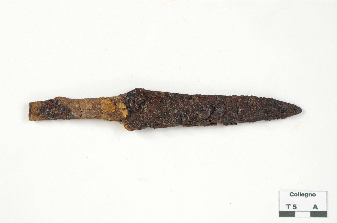 Coltello con lama a un taglio e sezione triangolare; codolo centrale a larghezza costante e sezione rettangolare