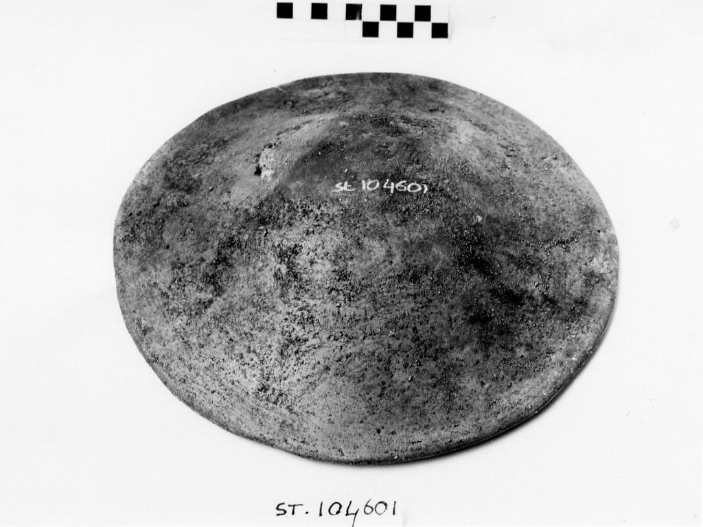frammento di orlo e parete di piatto a tesa con fondo probabilmente convesso e pareti con andamento concavo-convesso; presenta orlo estroflesso formante un gradino interno