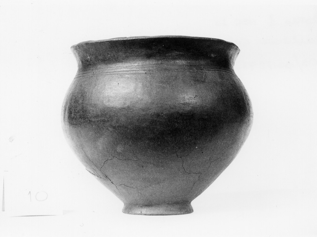unrna cineraria a corpo globoso con ampia bocca, labbro estroverso, spalla arrotondata e basso piede troncoconico