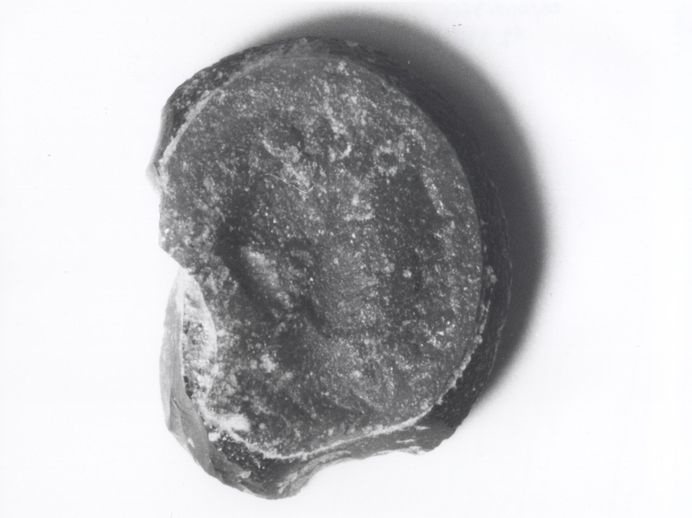 gemma ovale a sezione bitroncoconica di colore viola e azzurro imitante il niccolo/ testa ritratto femminile o maschile imberbe