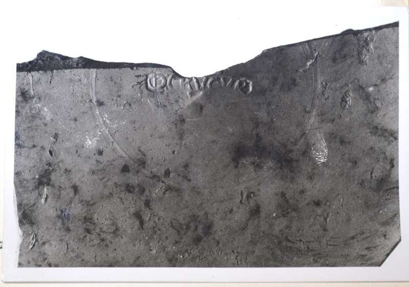 Frammento di fondo di coppa in terra sigillata gallica marmorizzata, piede ad anello, al centro bollo in cartiglio riferibile al vasaio Crucuro di un ateleir de La Graufesanque