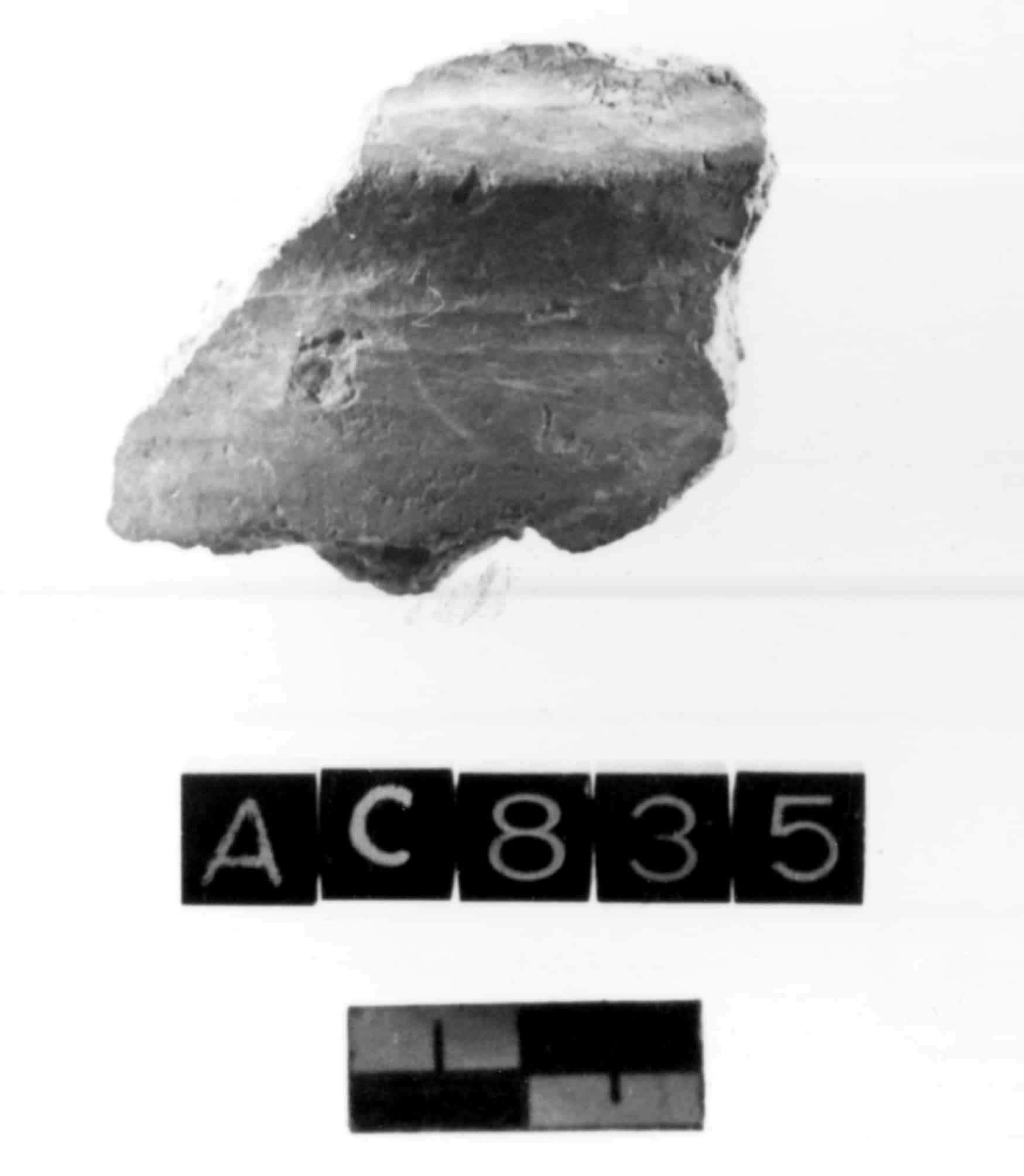Frammento di parete di vaso, di cui non è possibile ricostruire la forma. E' presente un piccolo cordone a sezione triangolare. Impasto non depurato. Superfici lisciate. Colore esterno rossiccio, interno nero
