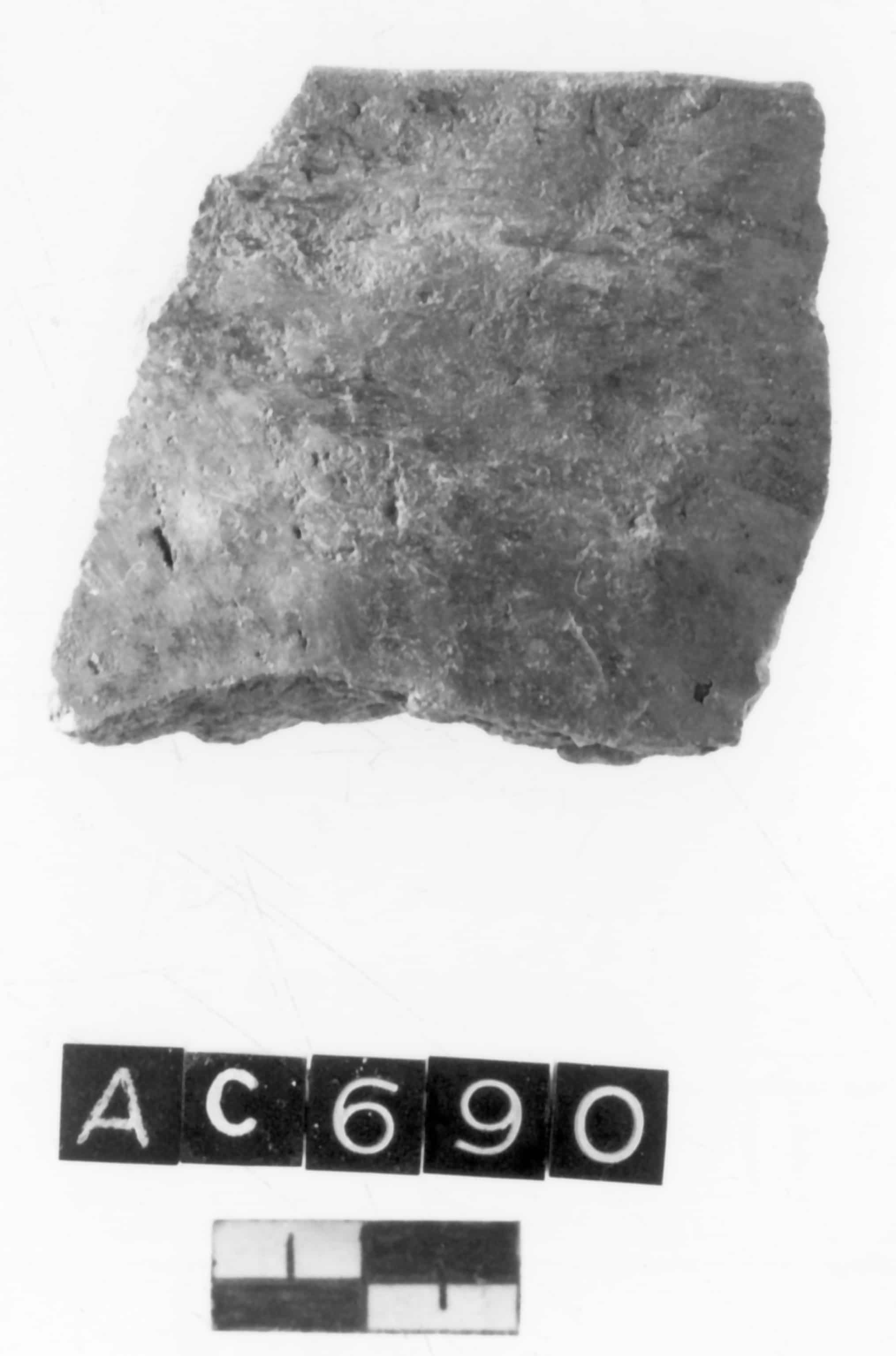 Frammento di orcio con orlo arrotondato. Spalla tesa. Impasto non depurato. Superficie irregolare, levigata a stecca, con zone lucide e tracce micacee. Colore marrone chiaro