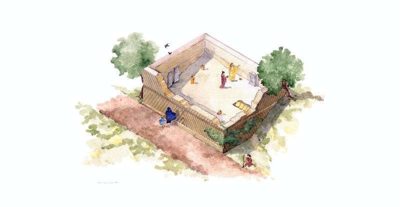 Si tratta di una tomba familiare della fine del I secolo d.C., formata da un semplice recinto a pianta rettangolare di m 9,30 per 7,40 (31 piedi romani per 25), al cui interno, sulla superficie scoscesa della collina, oggi spianata, erano ricavate le sepolture. L'edificio, foderato da un rivestimento in blocchetti squadrati di pietra, secondo una tecnica largamente diffusa nella vicina Gallia (petit appareil), è contraddistinto da una vivace, quanto singolare decorazione, ottenuta sfruttando il diverso colore dei blocchetti. Sul fronte principale dell'edificio, una banda orizzontale in opera reticolata (opus reticulatum) divideva la superficie in due fasce decorate con linee oblique disposte in modo da disegnare un motivo a spina di pesce con andamento contrapposto, che convergeva verso il centro