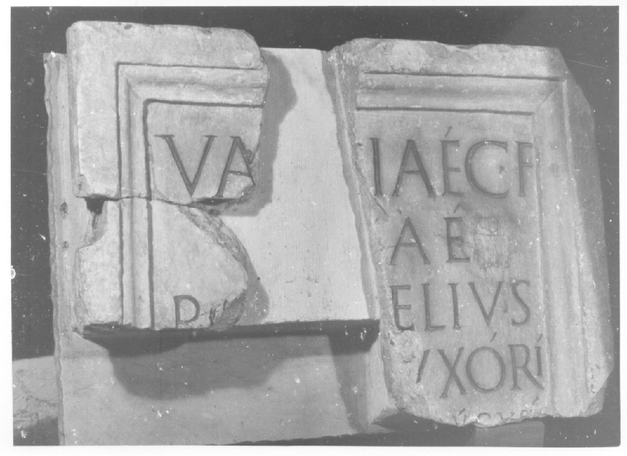 - ISCRIZIONI entro cornice modanata - VA[LER]IAE C(AII) F(ILIAE) / [VER]AE / P(UBLIUS) [CORN]ELIUS / […]UXORI / […]U SUO - capitale romana - a solchi - latino