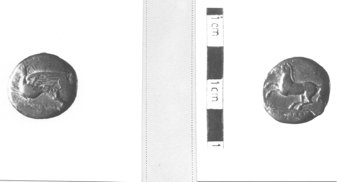 Diritto: Grifo in corsa a sinistra. Rovescio: Cavallo in corsa a sinistra