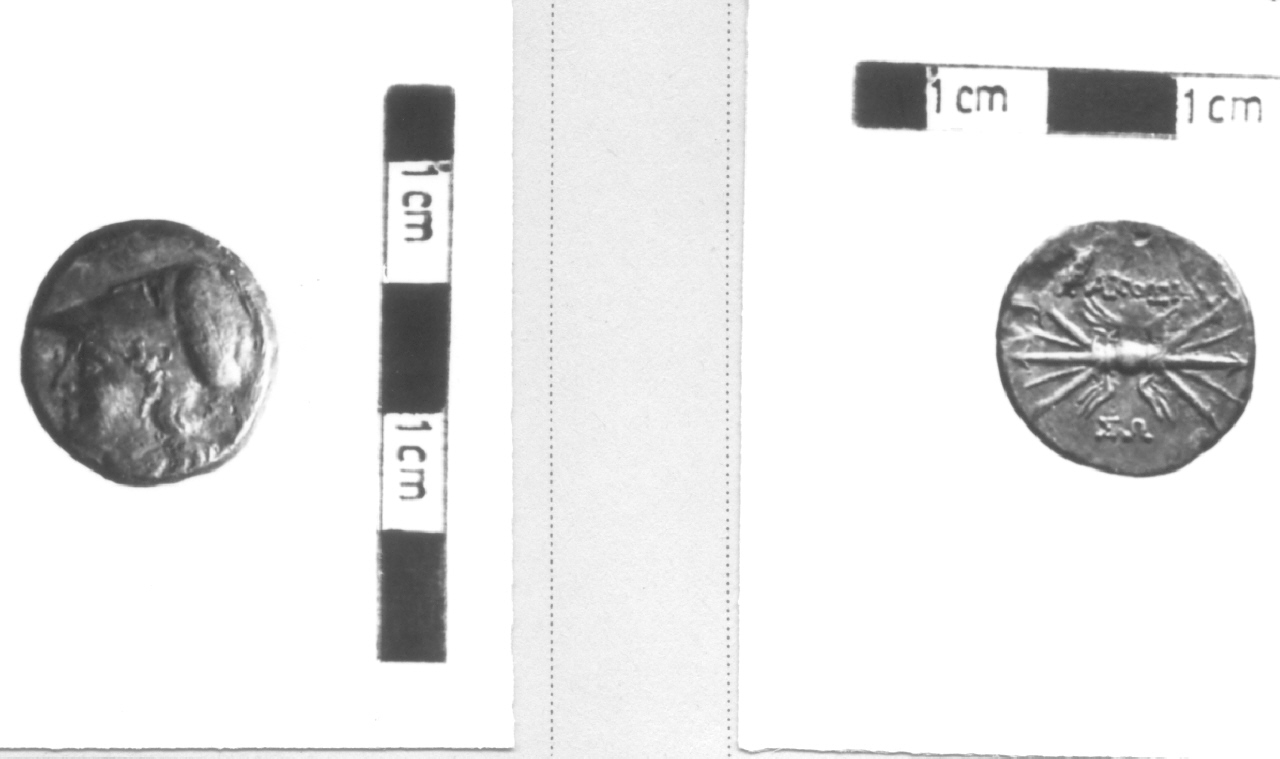 - ISCRIZIONI rovescio - SO / [SY]RAKOSION - maiuscolo - a rilievo - greco