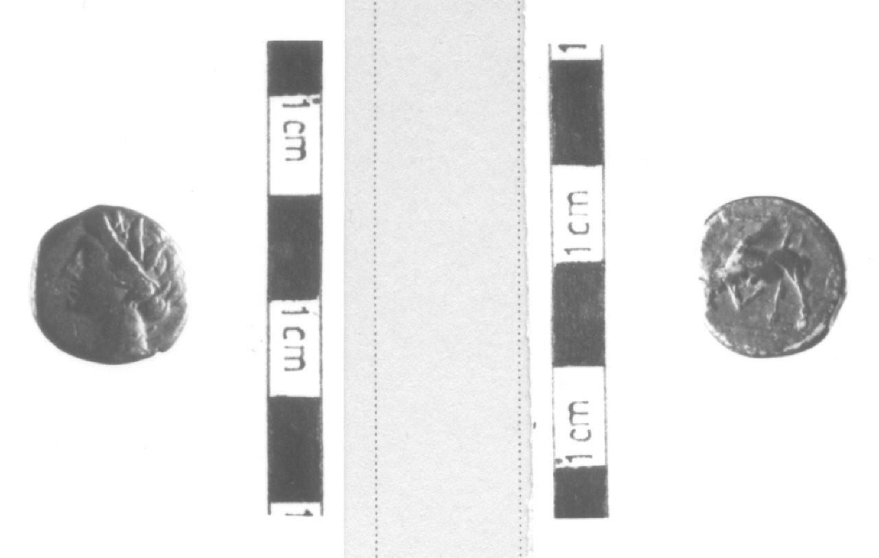 Diritto: Testa di Core a sinistra. Rovescio: Toro cozzante a sinistra; sopra clava e lettera o monogramma illeggibile; in esergo iscrizione