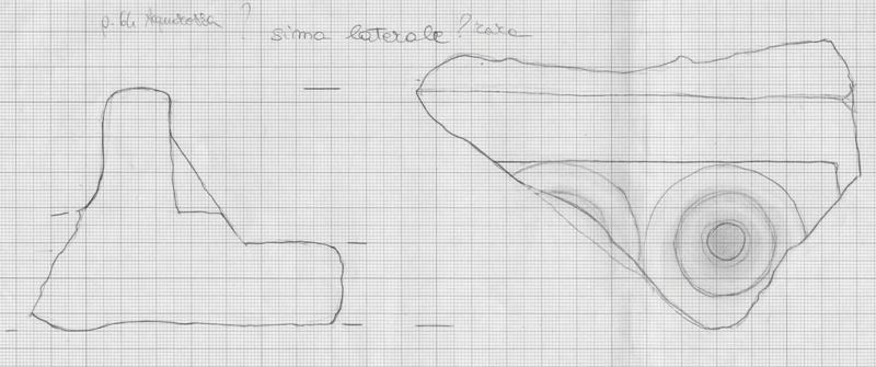 1 fr. con decorazione ad ovoli impressi con cavità centrale, racchiusi almeno su due lati da una cornice piatta; impasto arancio con inclusi bianchi