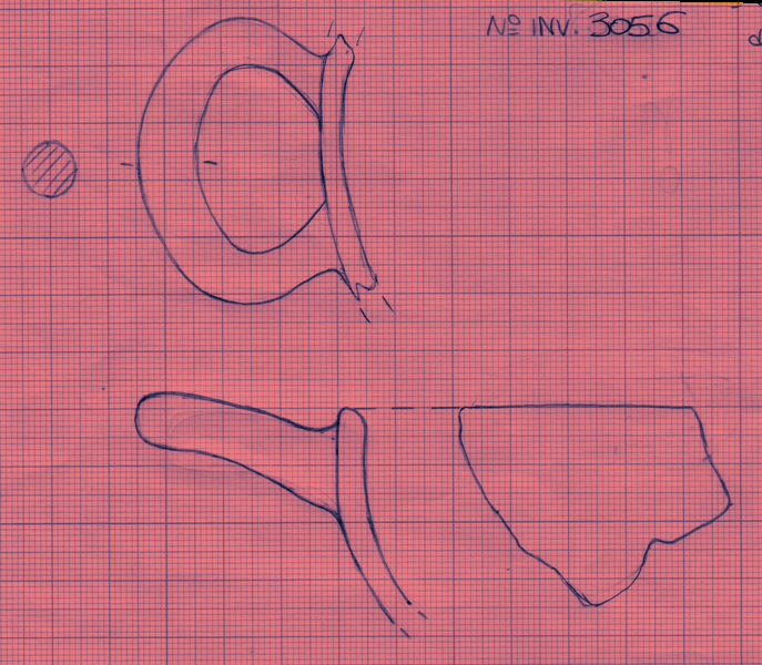 1 fr. di orlo arrotondato e ansa orizzontale a bastoncello, argilla beige; vernice nera diluita in alcuni punti