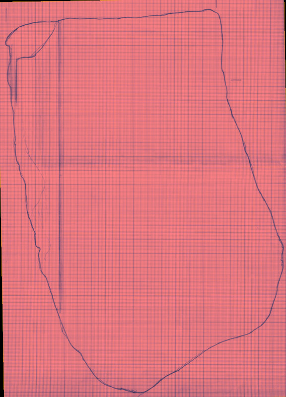 1 fr. di lastra di forma probabilmente quadrangolare con una faccia levigata e con resti di modanatura