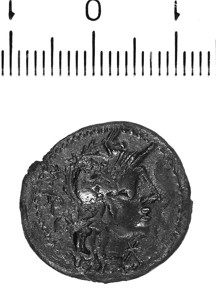 D/Testa elmata di Roma a destra; davanti stella. Contorno perlinato. R/Giove su quadriga a destra, con redini e fulmine nella mano sinistra e ramo nella destra