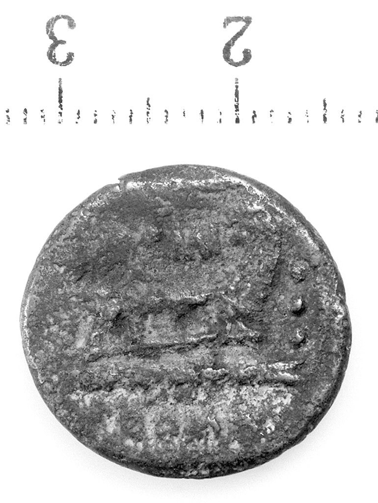 D/ Testa giovanile di Ercole a ds.; dietro, °°°. R/ Prua a ds.; a ds. °°°. In alto, clava