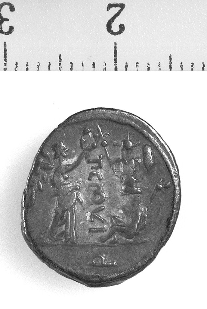 D/ Testa di Giove a d. R/ Vittoria in atto di incoronare un trofeo; sottoil trofeo, un prigioniero