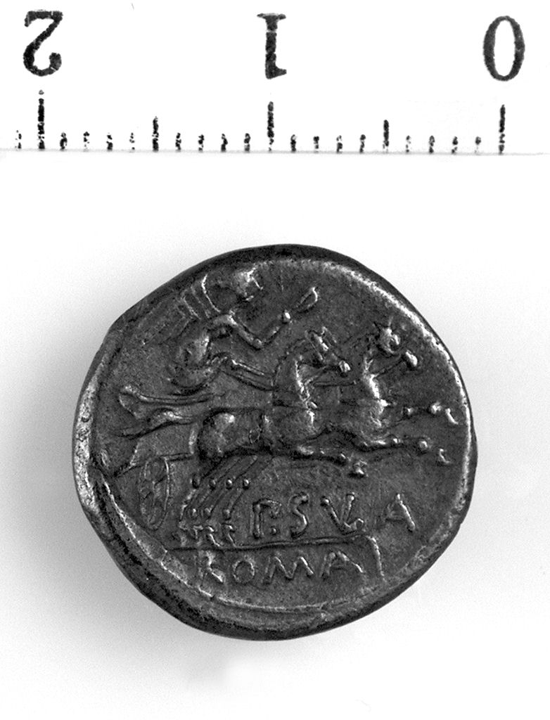 D/ Testa di Roma a d. con elmo alato; dietro X. R/ Vittoria su biga al galoppo verso d