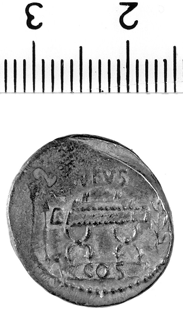 D/ Sedia curule tra freccia e ramo di palma. R/ Sedia curule fra lituo e corona
