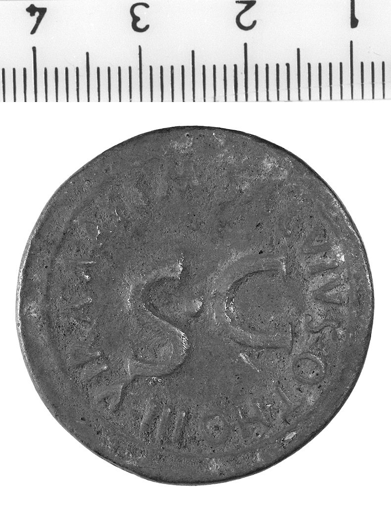 - ISCRIZIONI sul bordo - D/ [CA]ESAR AUGUST. PONT. MAX. TRI[BU]NIC. POT. R/ M. SALVIUS OTHO III VIR A.A.A. F. F - lettere capitali - a rilievo - latino