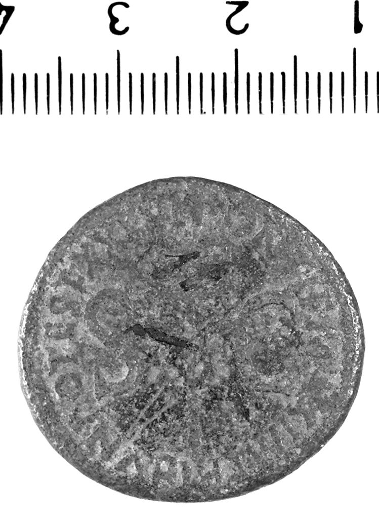 - ISCRIZIONI sul bordo - D/ [TI. CAE]SAR DIVI AUG. F. AUGUST. IMP. VIII R/ PONTIF. MAXIM. TRIBUN. POTEST. XXXVII - lettere capitali - a rilievo - latino