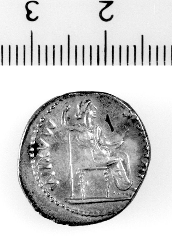 D/ Testa laureata di Tiberio a d. R/ Figura femminile seduta a d. con ramo nella s. e lungo scettro nella d. ( Livia come Pax )