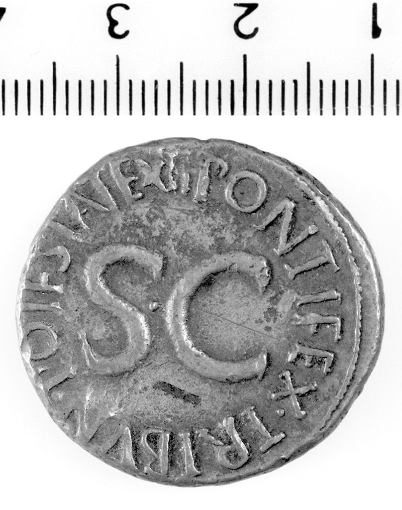 D/ Testa di Tiberio a d. R/ Iscrizione al centro