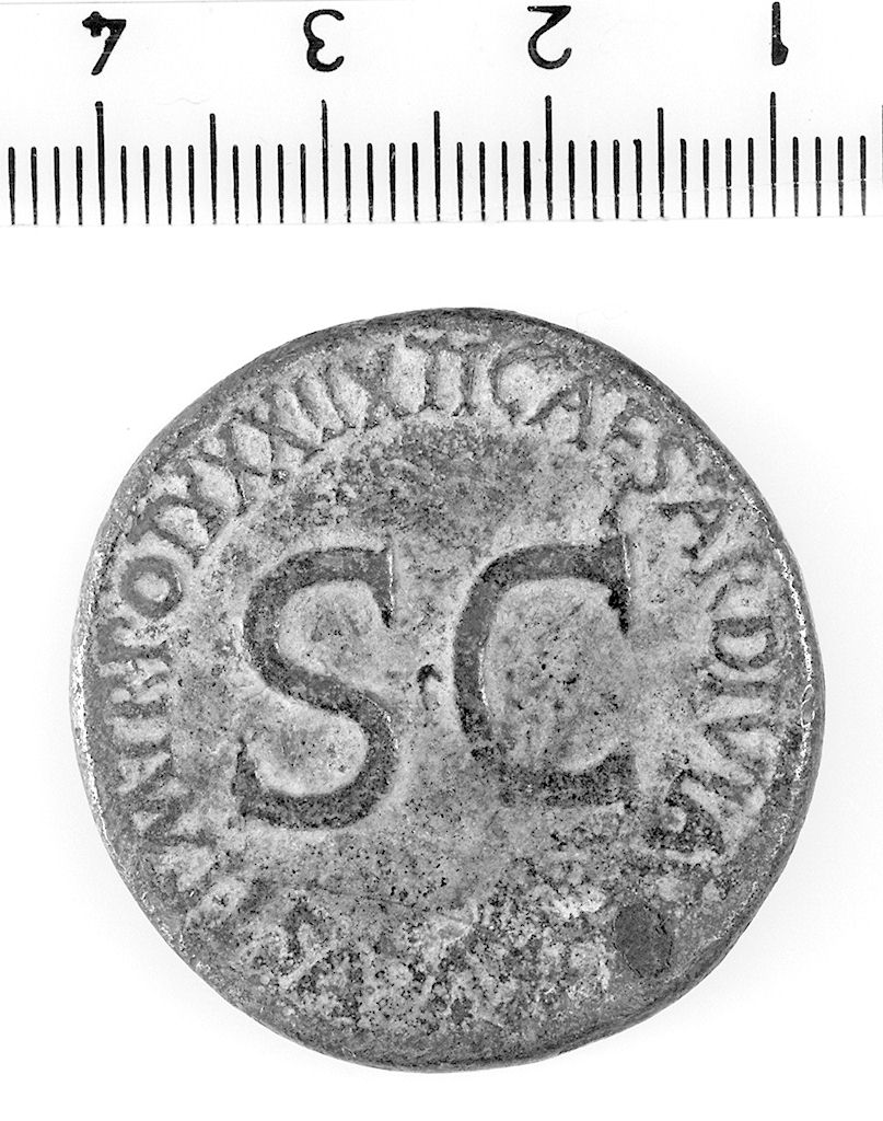 - ISCRIZIONI sul bordo - D/ TI. CAESAR DIVI AU[G. F.] AUGUST. P. M. TR. POT. XXXIIX R/ DIVO/AUGUSTO/S.P.Q.R - lettere capitali - a rilievo - latino