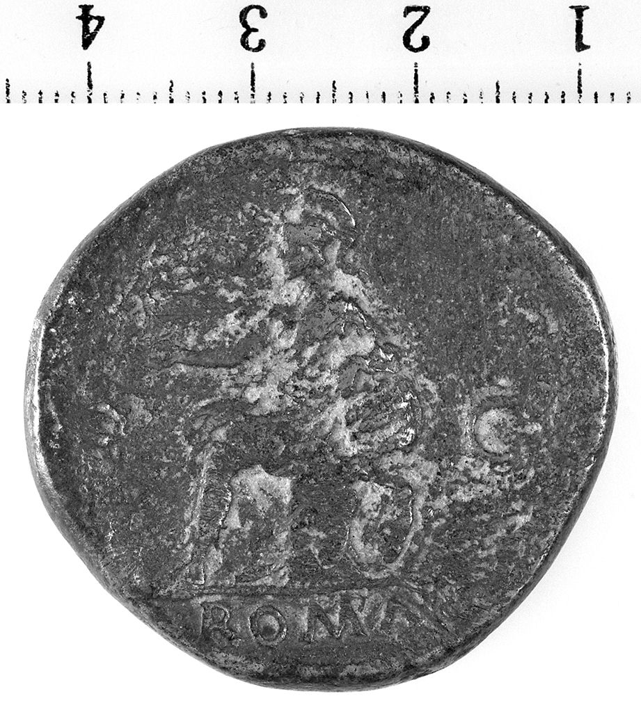 D/ Testa laureata di Nerone a d. R/ Roma galeata seduta a s. su corazza. Tiene una Vittoria con la d.