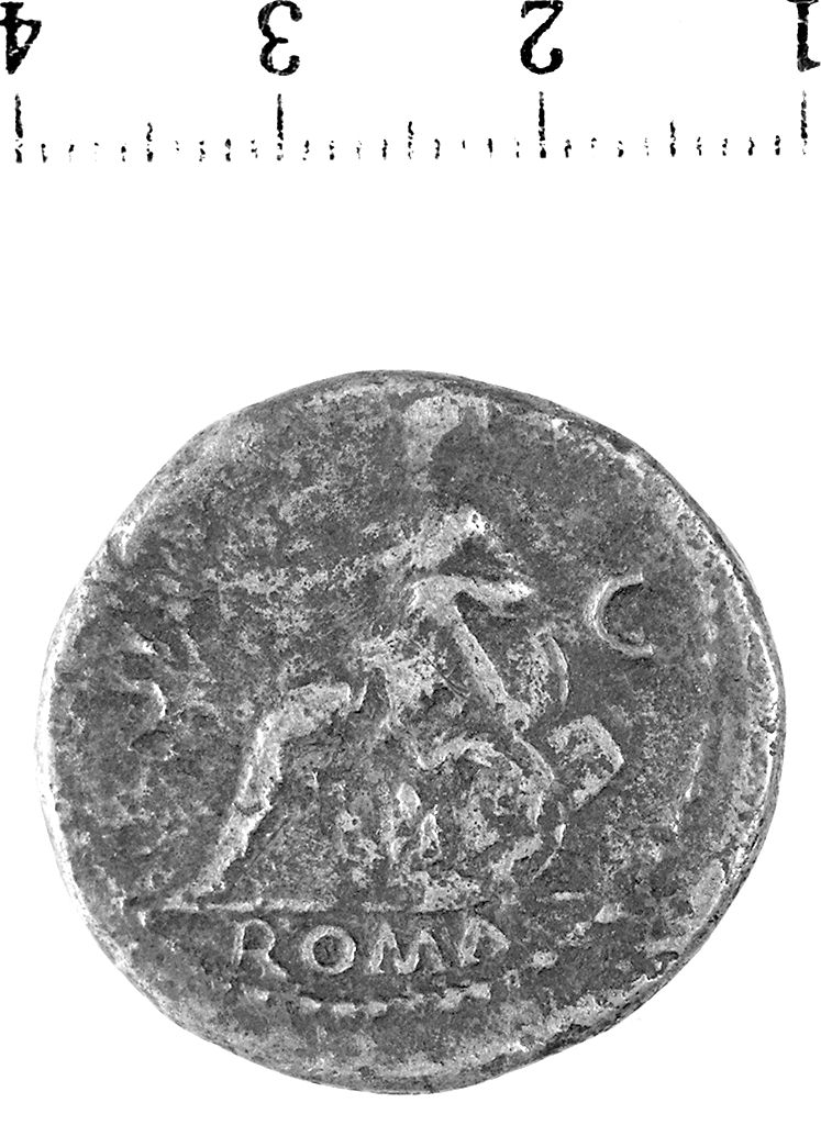 D/ Testa radiata di Nerone a d. R/ Roma galeata seduta a s. su corazza. col piede posato su un elmo, tiene il parazonio ed una corona; dietro, scudo