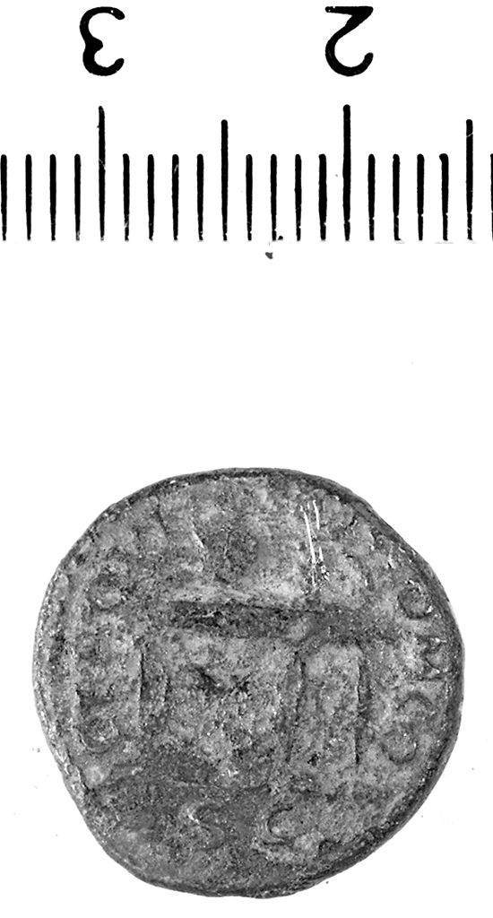 D/ Testa laureata di Nerone a d. R/ Tavola adorna di bassorilievi, con sopra il segno di valore; urna e corona, sotto scudo rotondo
