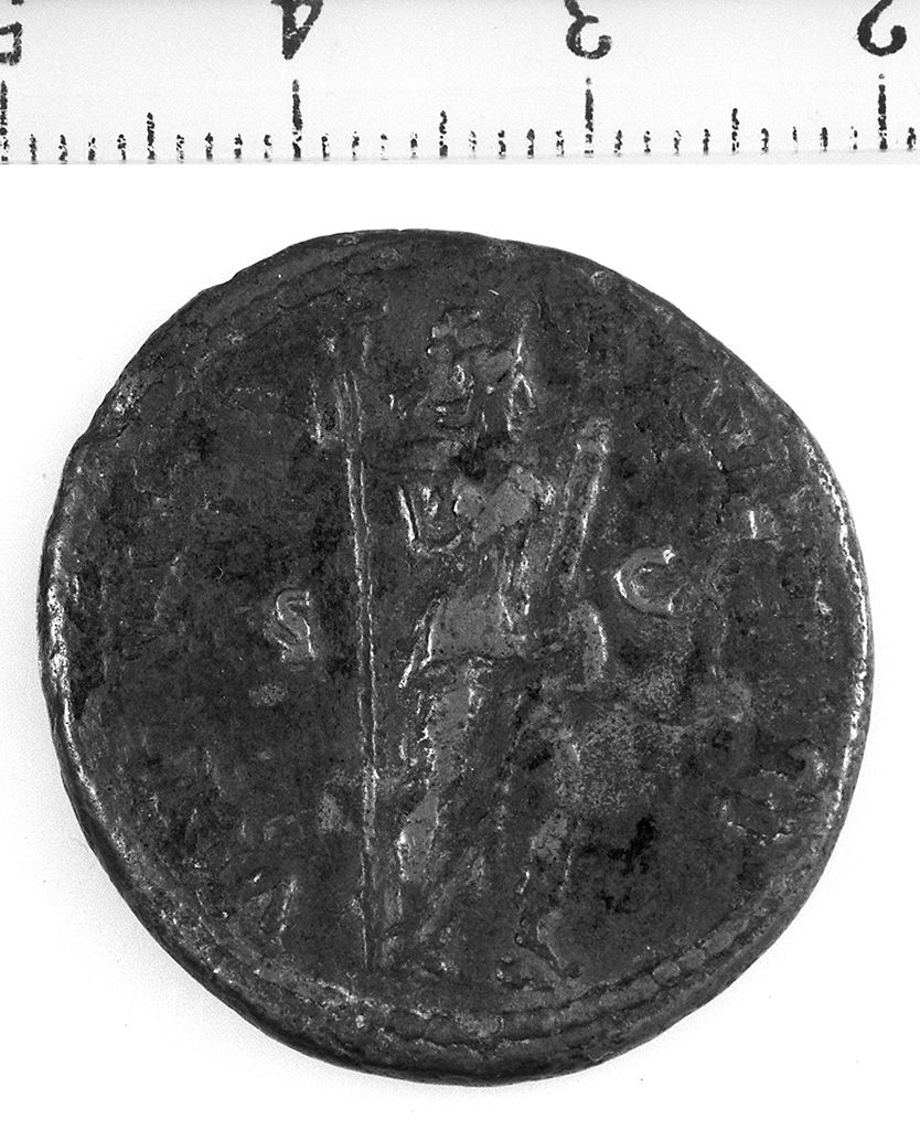 D/ Testa laureata di Domiziano a d. R/ La Virtus stante a d. con asta