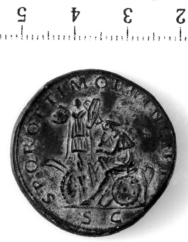D/ Testa laureata di Traiano a d. R/ Dace seduto su armi davanti a trofeo