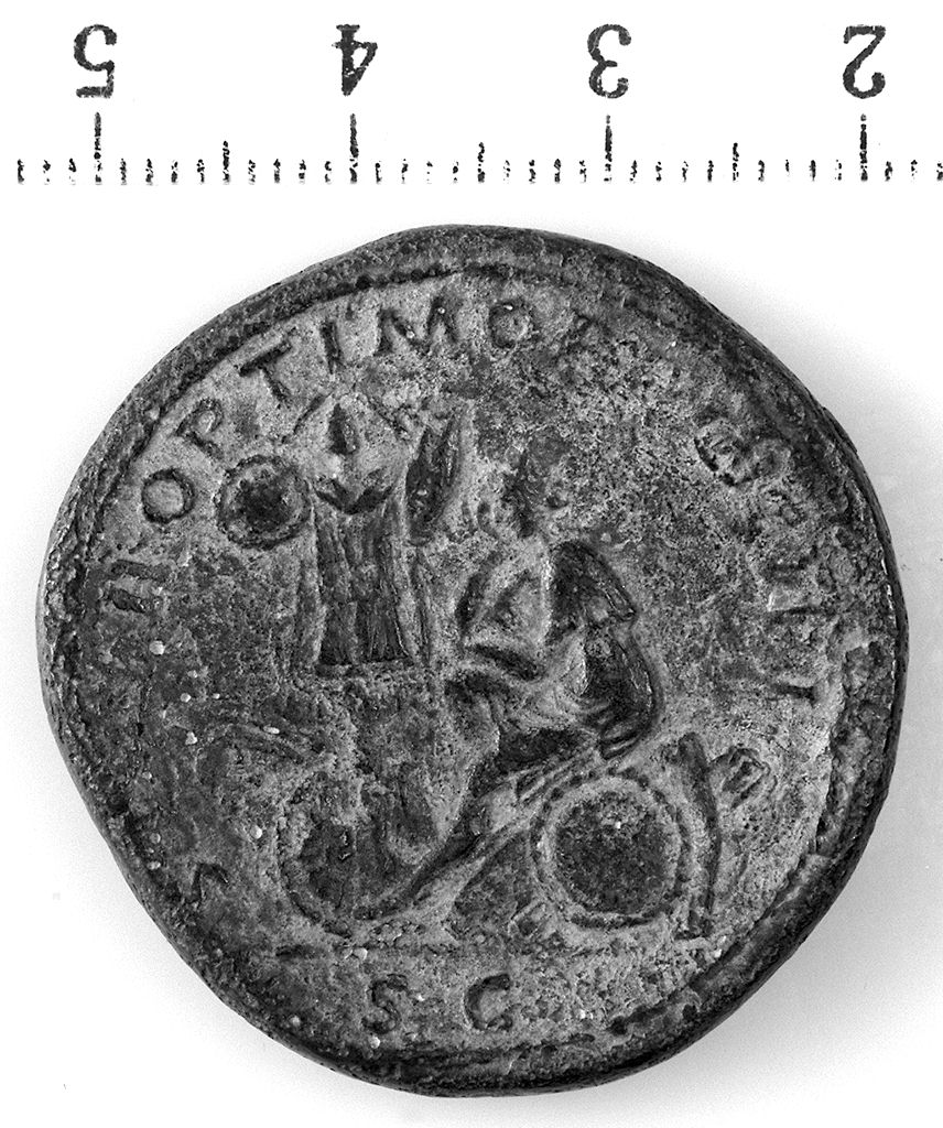 - ISCRIZIONI in esergo - R/ S. C - lettere capitali - a rilievo - latino