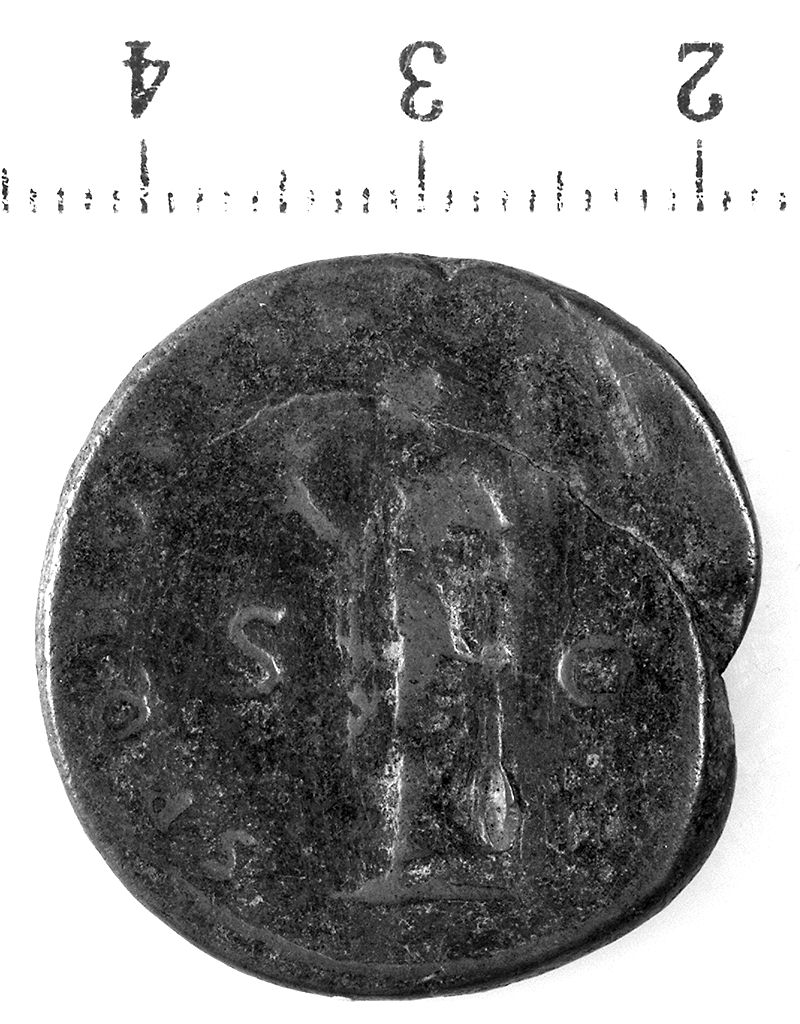 D/ Testa laureata di Traiano a d. R/ La Spes gradiente a s. tiene un fiore nella d. e solleva la veste con la s