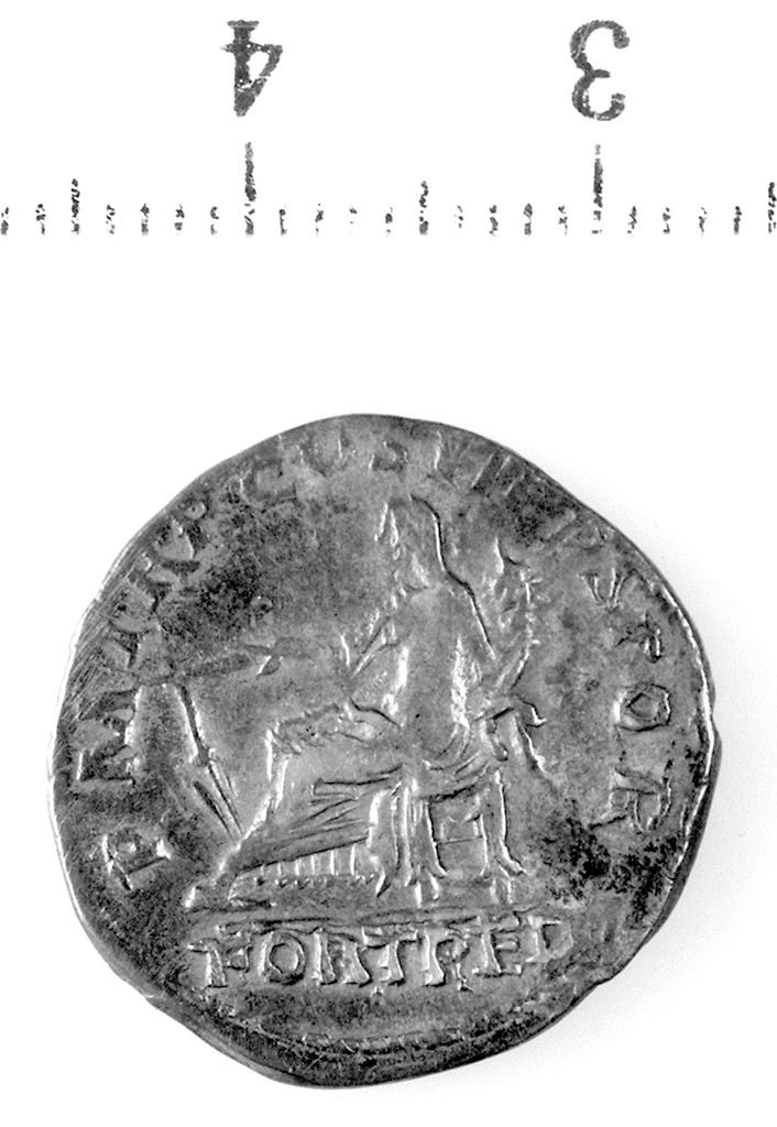 D/ Busto laureato e drappeggiato di Traiano a d. R/ La Fortuna seduta a s. con timone e cornucopia