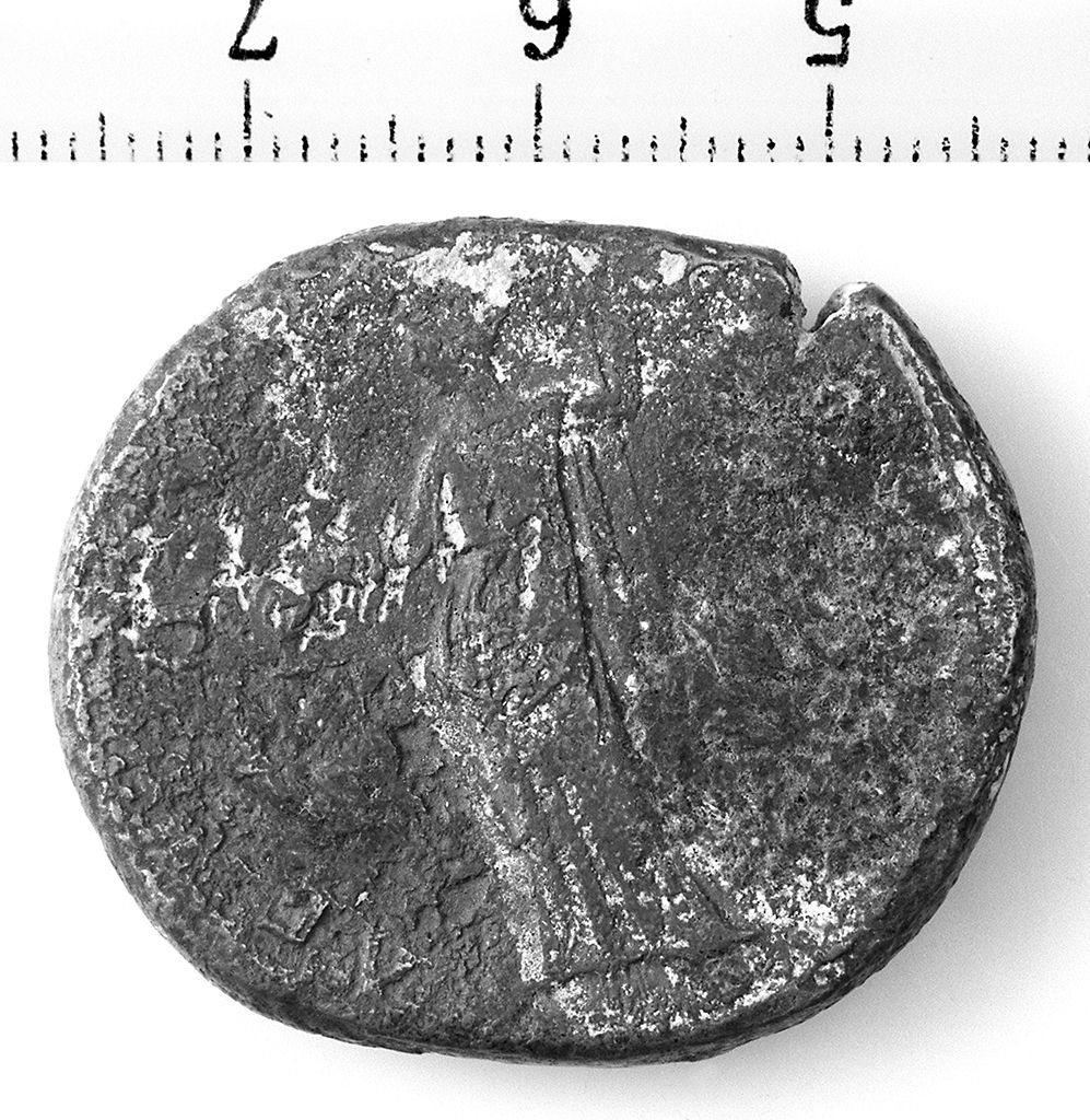 D/ Busto di Adriano laureato a d. R/ L'Aeternitas stante di fronte e volta s . con lungo scettro nella s. e le teste del Sole e della Luna nella mano d
