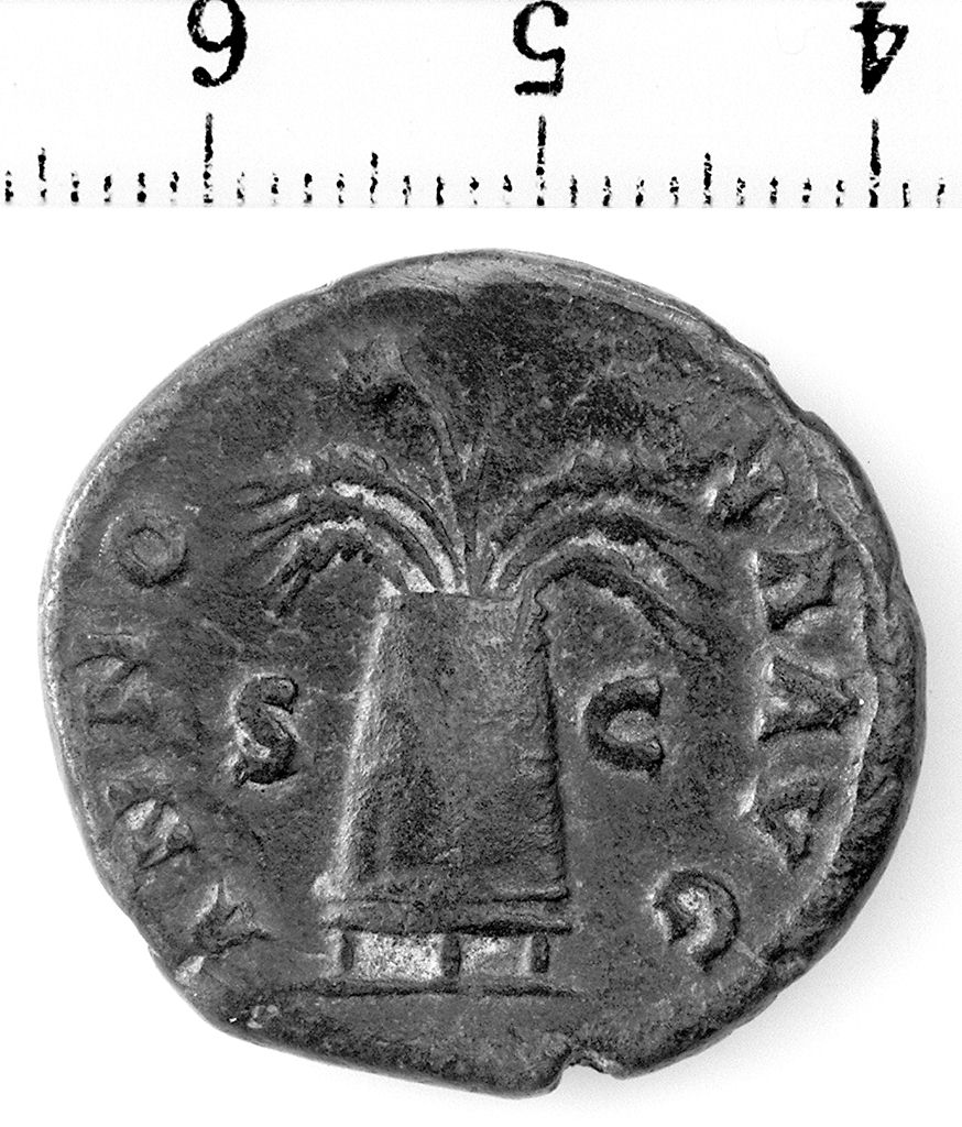 D/ Testa di Adriano laureata a d. R/ Modius con 4 spighe e 2 papaveri
