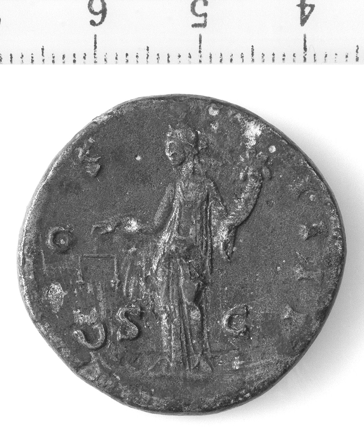 D/ Testa laureata di Antonino Pio volta a d. R/ L'Aequitas stante di fronte e volta a s. con bilancia e cornucopia
